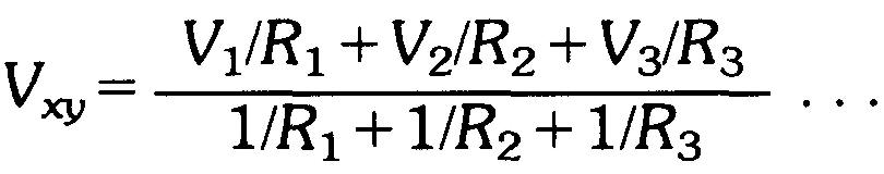 Cette formule se déduit de la transformation des sources de tension en sources de courant et de la combinaison des résultats. Le numérateur qui comprend des termes en V/R est la somme des sources de courant en parallèle. Le dénominateur qui se compose de termes en 1/R est la somme des conductances en parallèle.
