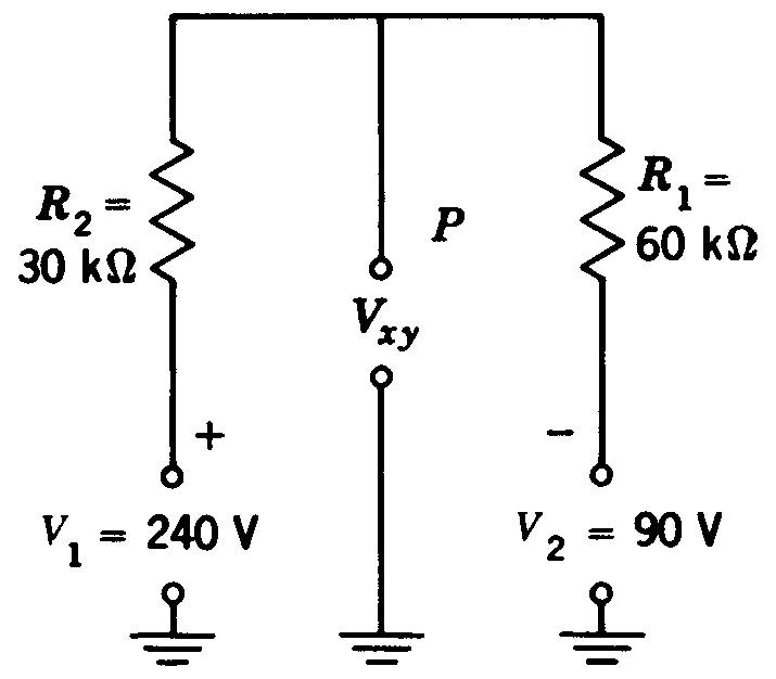 Le problème de la figure 9-1 consiste à trouver la tension en P par rapport à la masse commune pour le circuit représenté en (a).