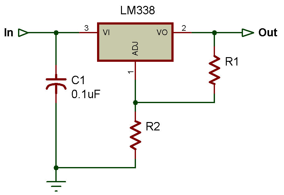LM338 Basic circuit Voltage Calculator Look at a basic circuit. We use only 2 resistors can set the constant output voltage. |