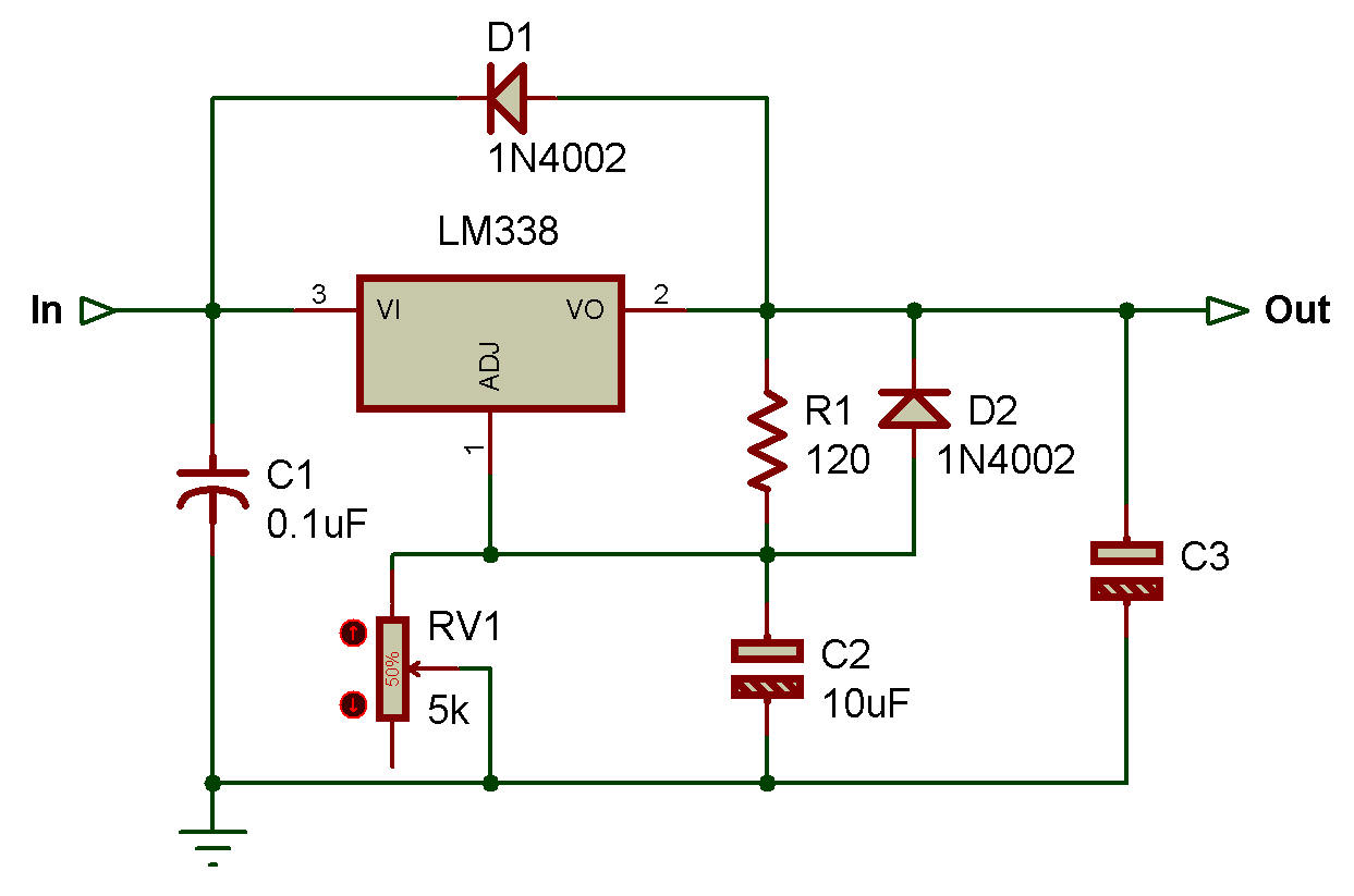 Protection Diodes You do not want to see this IC damage, right? As it is expensive. Read now to keep it is healthy. In the circuit diagram above. We use the external capacitors with any IC regulator. Sometimes, we need to add the protection diodes to prevent low current parts in the regulator. When these capacitors(like 20uF) discharge, it will have low enough internal series resistance to deliver 20A spikes when shorted. Although this surge is short, but it has enough energy to damage parts of the IC. |