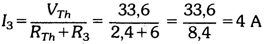 La tension VTh produit alors un courant qui circule dans la résistance totale formée de la résistance RTh de 2,4Ω et de la résistance R3 de 6Ω: