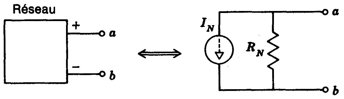 Figure 9-8 Tout réseau du carré de gauche peut être ramené au circuit de Norton équivalent de droite