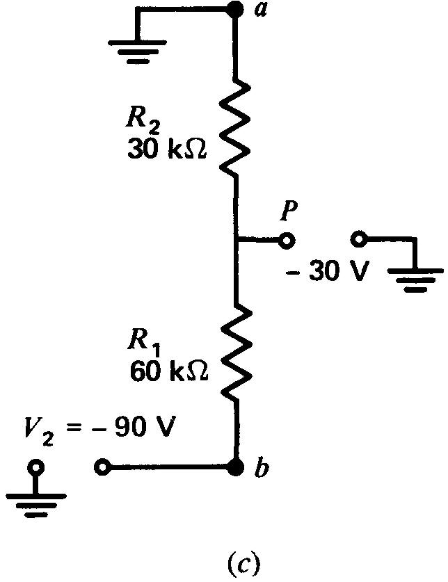Le problème de la figure 9-1 consiste à trouver la tension en P par rapport à la masse commune pour le circuit représenté en (a).