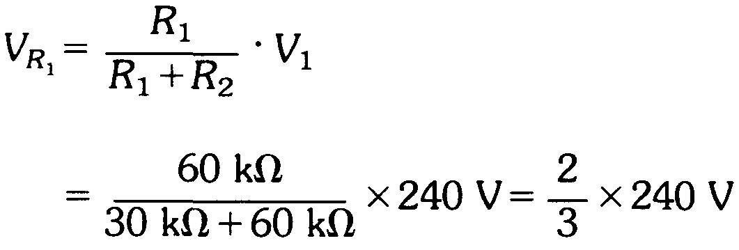 De même, dans le cas du diviseur de tension formé des deux résistances R1 de 6Ω et R2 de 4Ω, la tension inférieure VR2 est les 4/10 de 30V, soit 12V.