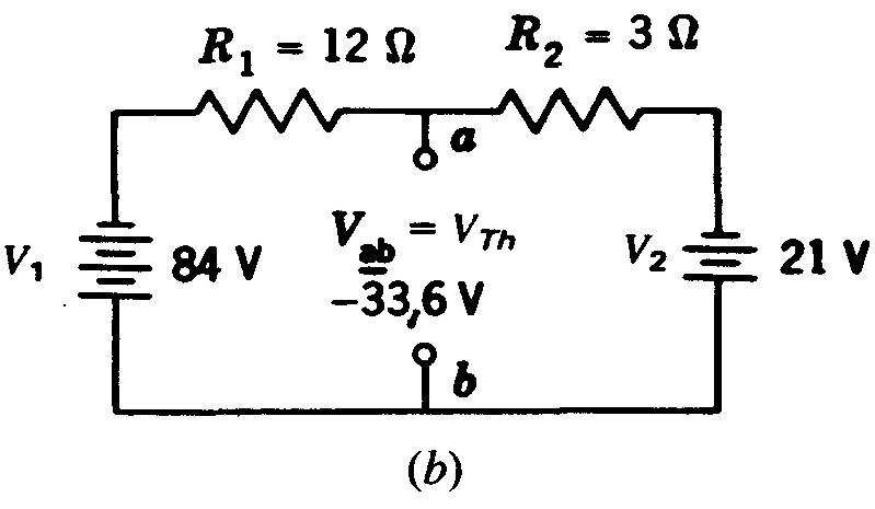 La valeur totale résultante de Vab, -33,6 V, indiquée sur la figure 9-5b, est la valeur de VTh.