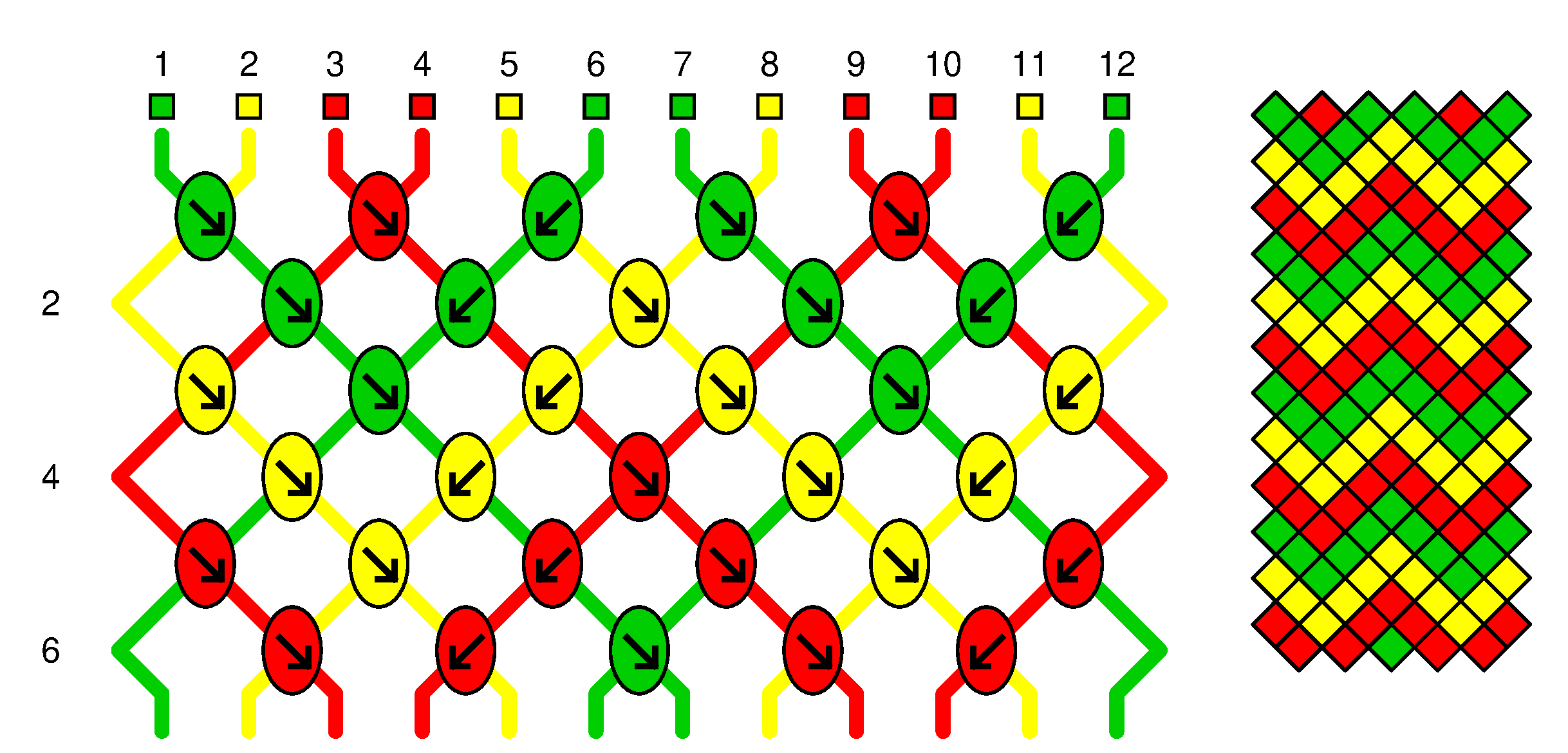 Les rangées paires - les fils à l’extérieur ne sont pas travaillés. | |