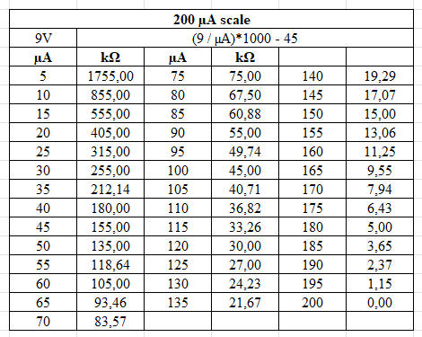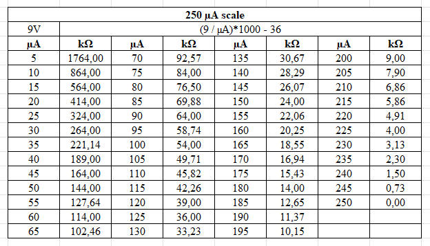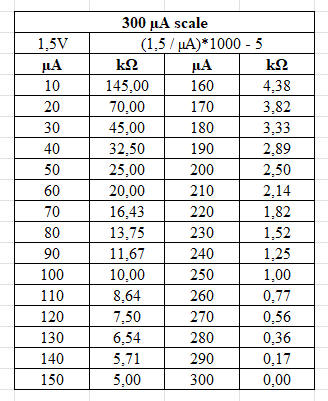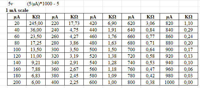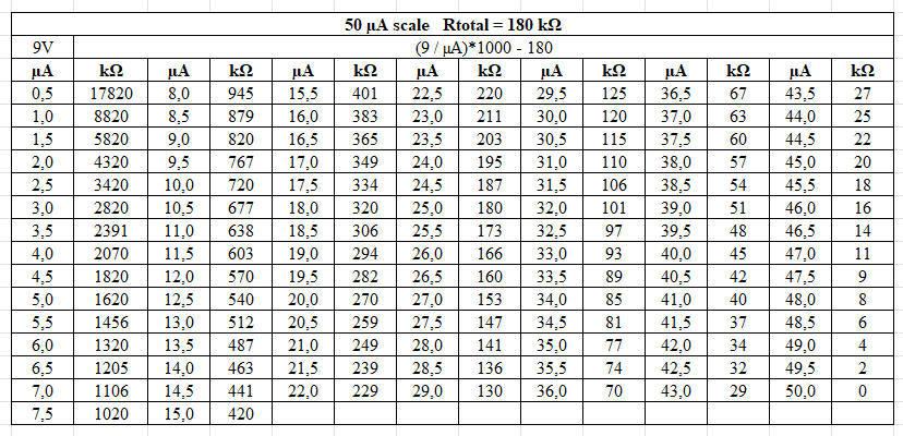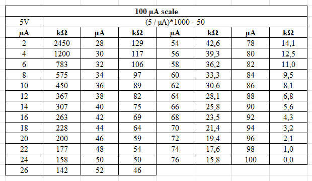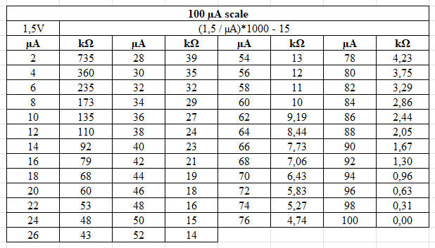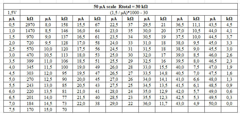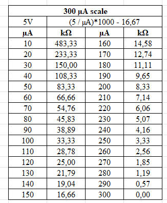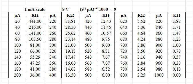 This means that a resistance will cause a deflection of 500 µA (0.5 mA). |