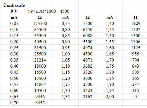 Voir plus bas pour le tableau complet des déviations pour 1 mA. |