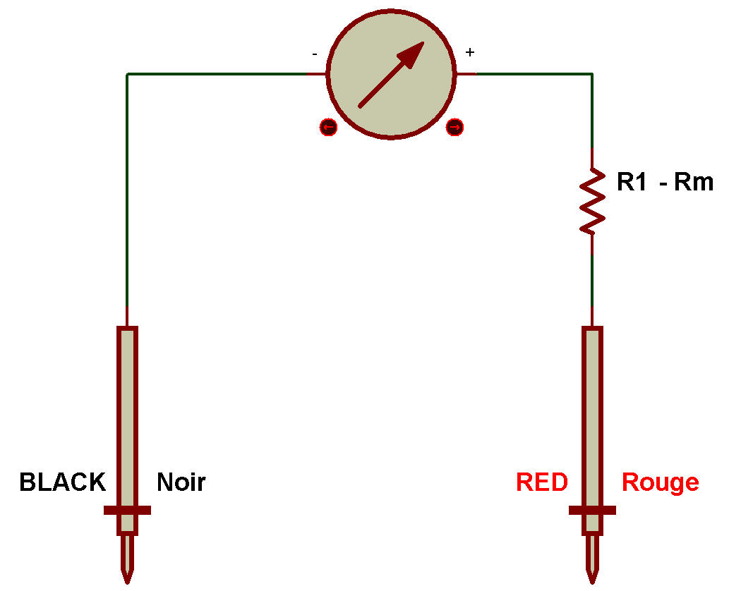 trouver Rm: Résistance interne de l'ampèremètre Utilisez une résistance de 22KΩ. Avec un multimètre tester la résistance de 22KΩ pour obtenir sa valeur exacte (Re). Connecter la résistance de 22 KΩ en série avec l'ampèremètre et mesurer la valeur de la résistance obtenu (Rt). De la valeur de la résistance obtenu Rt soustrayez la valeur exacte de la résistance de Re. Rm = Re - Rt |