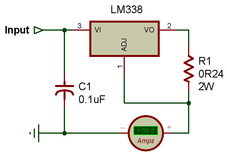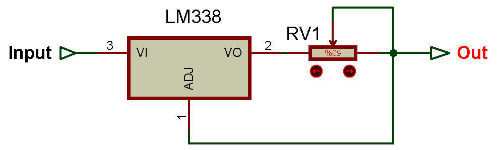 LM338 Basic circuit Voltage Calculator Look at a basic circuit. We use only 2 resistors can set the constant output voltage. |