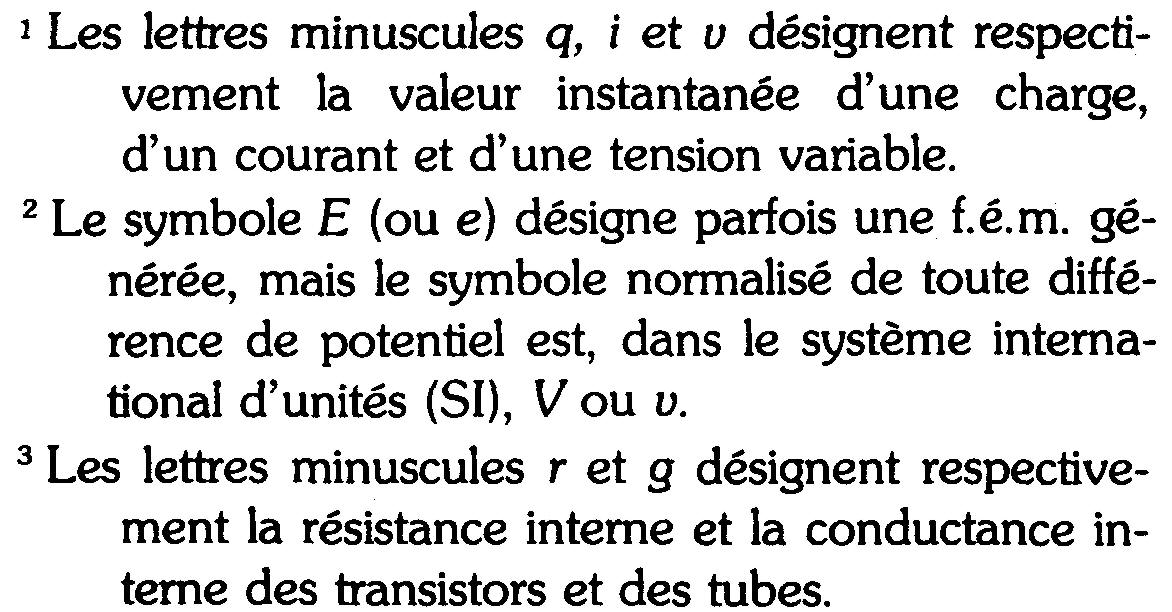 Dans la colonne des symboles, les lettres minuscules q, v et i indiquent que la valeur de la grandeur correspondante varie en fonction du temps.
