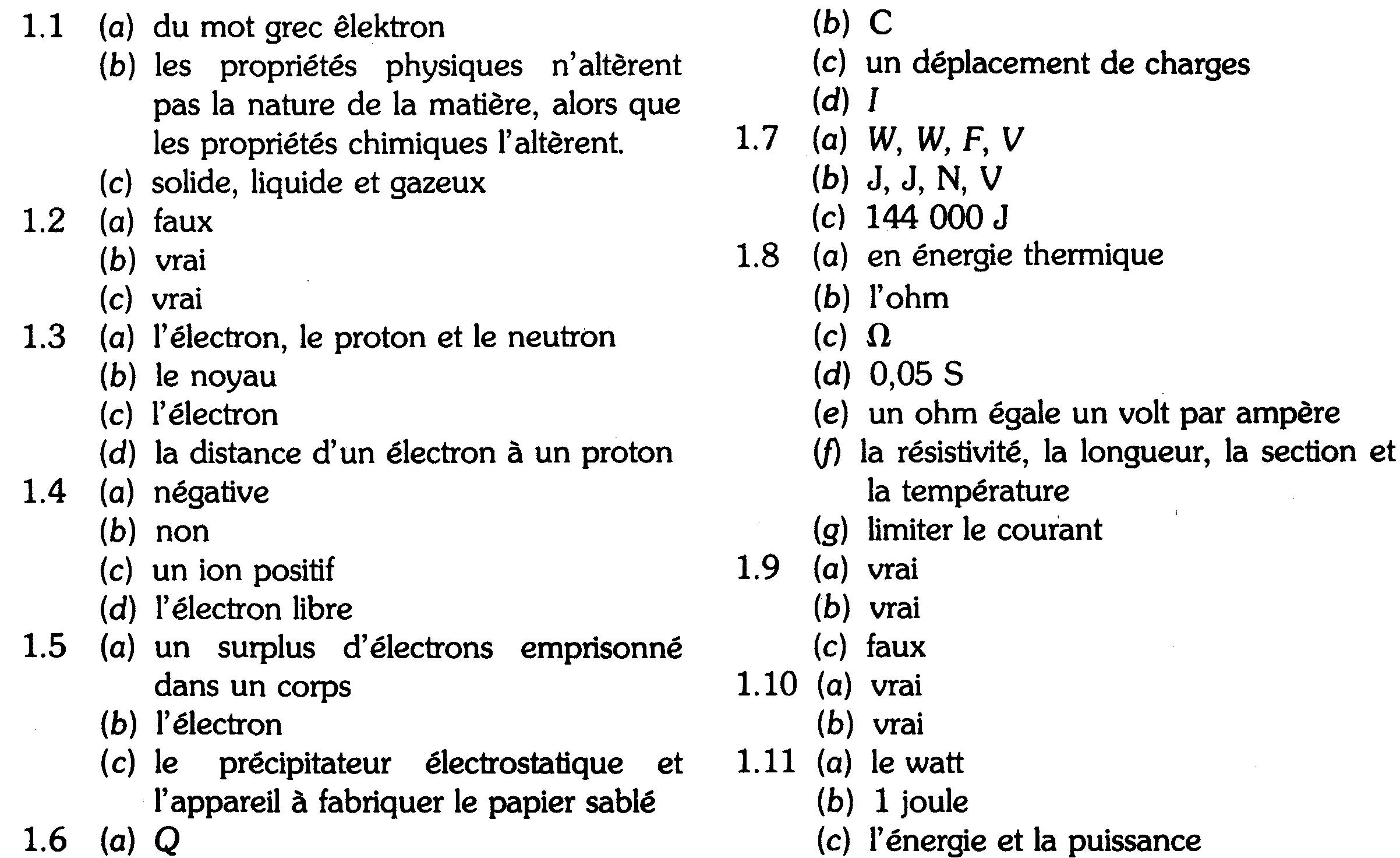 9. Le tableau 1-6 énumère les caractéristiques des circuits électriques.