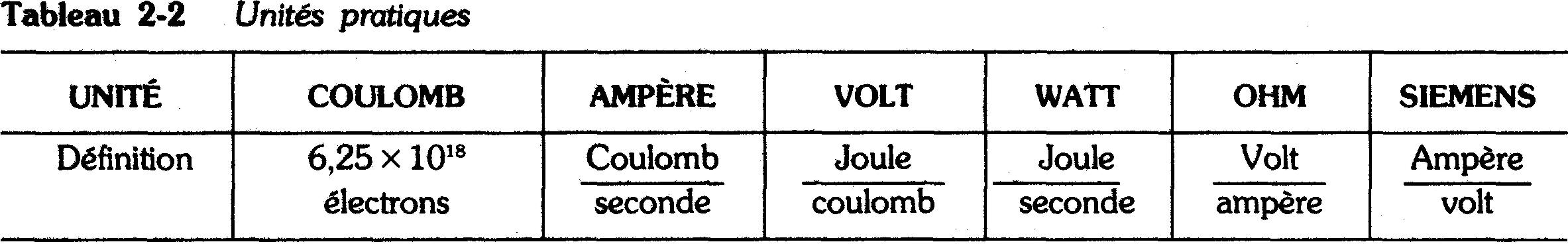 9. Le tableau 2-2 résume les unités pratiques dans la loi d'Ohm.