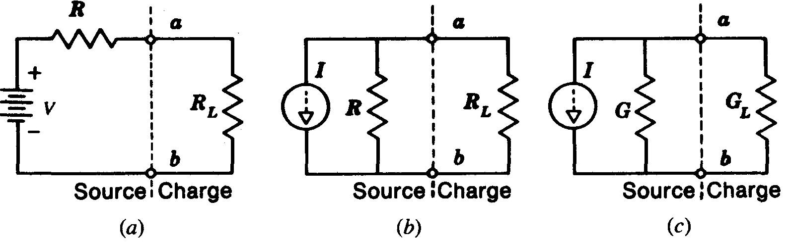 C'est pourquoi il peut être préférable de considérer la source de courant comme shuntée par une conductance G, comme indiqué à la figure 9-7c.