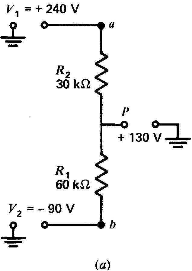 Le problème de la figure 9-1 consiste à trouver la tension en P par rapport à la masse commune pour le circuit représenté en (a).