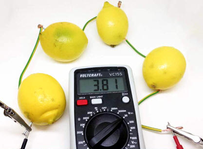 Enfin, connectez le quatrième citron et vérifiez que la tension est encore plus élevée.