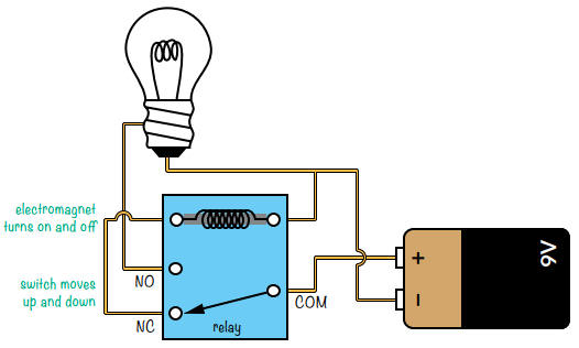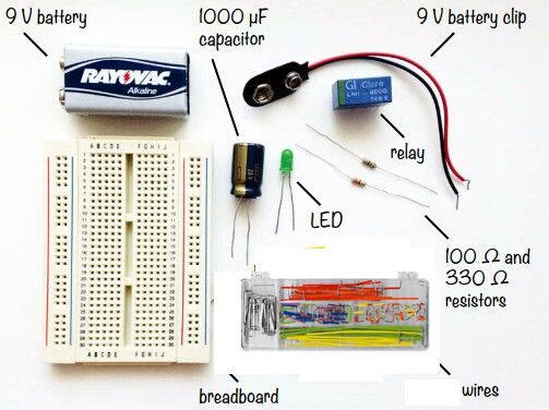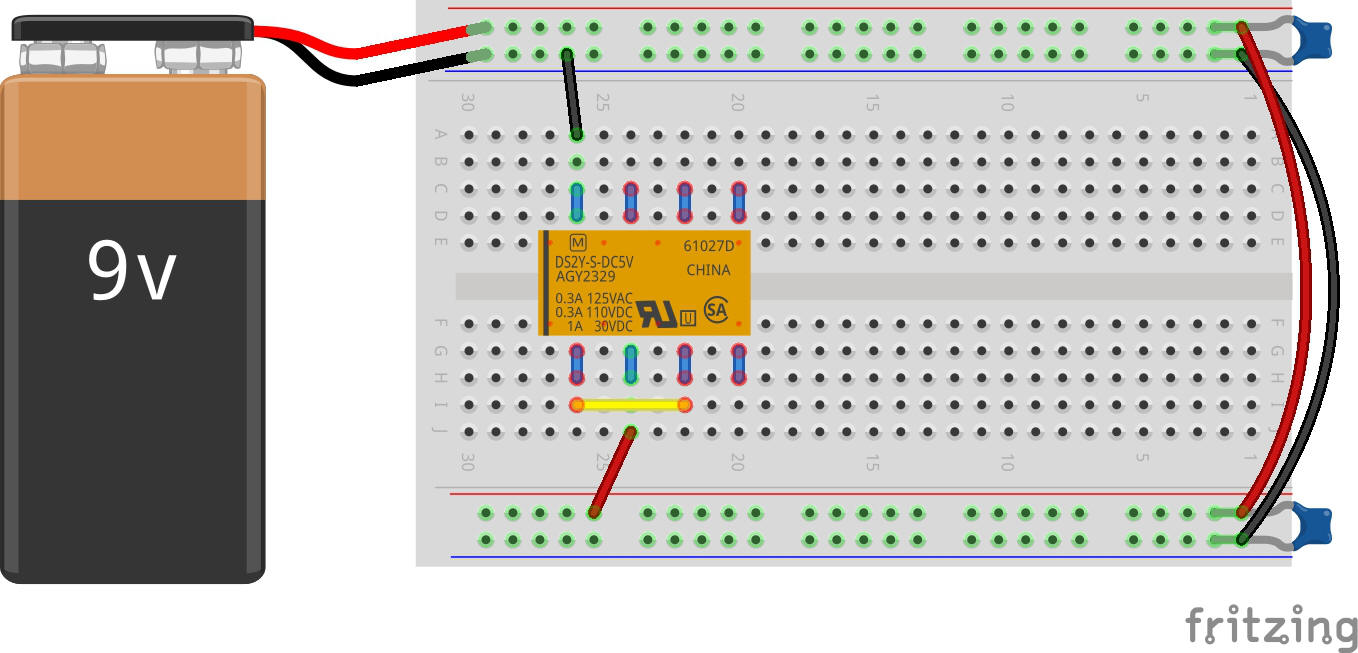 Branchez la pile 9 V : vous devriez entendre un tic-tac très rapide. Le relais s'allume et s'éteint. Débranchez la pile pour l'instant.
