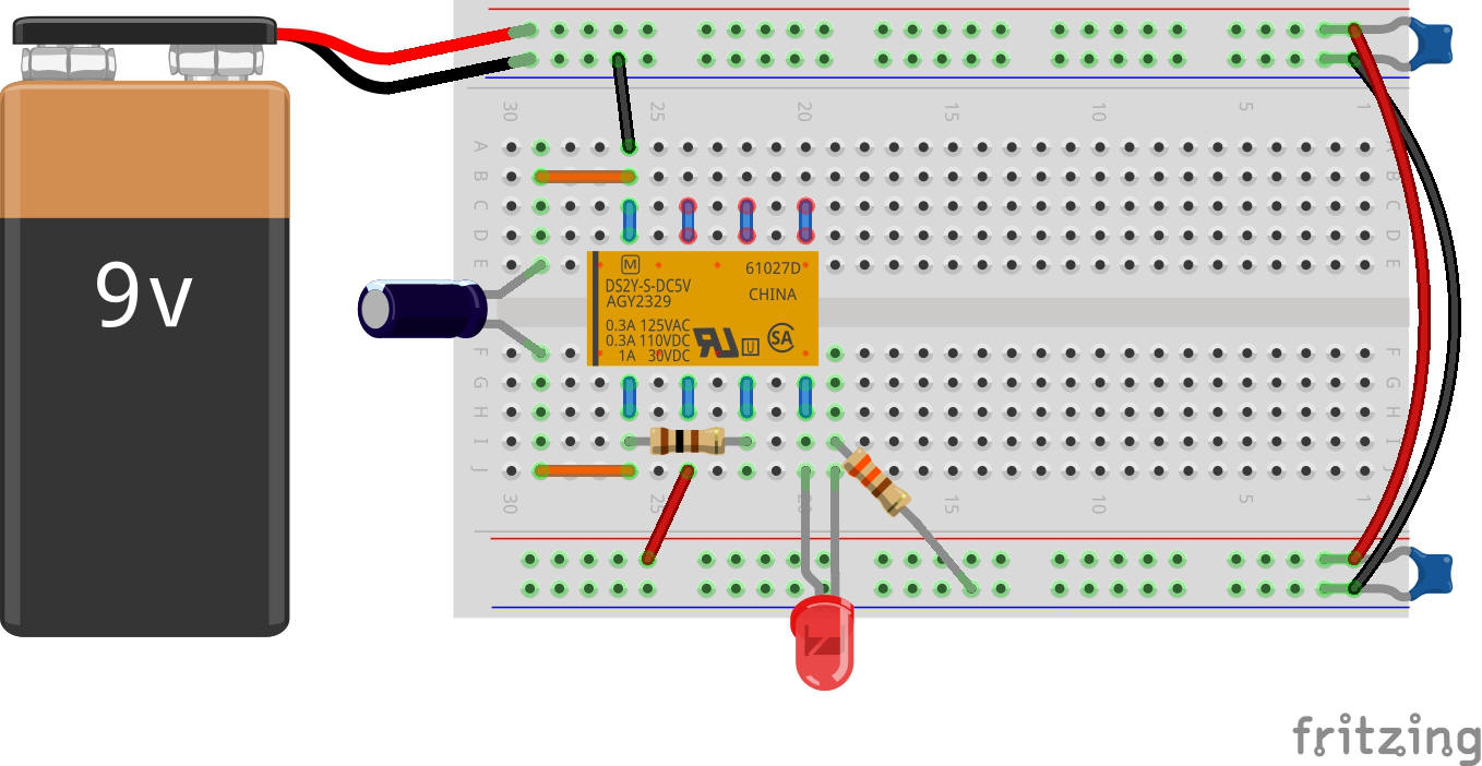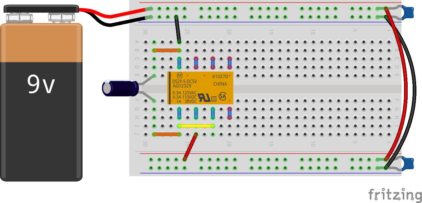 Mais dès que le relais est désactivé, le condensateur devrait se recharger, laissant le relais désactivé pendant une fraction de seconde seulement.
