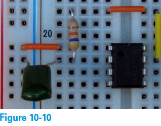 Sur la figure 10-20, les composants qui déterminent la durée, ou fréquence d’oscillation, sont désignés par R1, R2 et C.