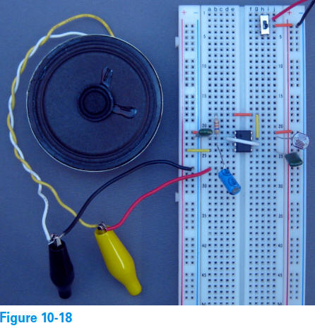 Le schéma de votre circuit d'effets sonores contrôlés par la lumière est présenté dans la figure 10-19.