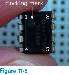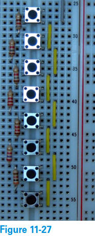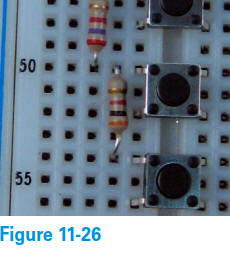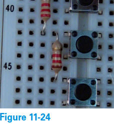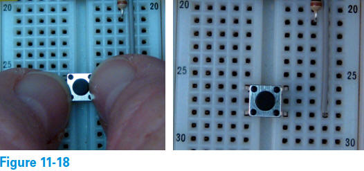 Notez que le bouton-poussoir illustré à la figure 11-1 possède quatre broches.