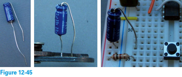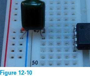 Insérez le condensateur électrolytique de 4,7 µF dans la plaque d'essai, comme