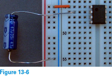 condensateur de 22 μF (trou 53a et rail d’alimentation négatif à gauche de la
