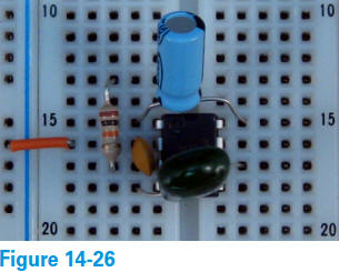 Branchez ensuite une extrémité de la résistance dans le trou 13c et l'autre extrémité dans le trou 17c. (Voir figure 14-25.)