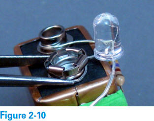 4. Connectez la cathode de la LED à la borne négative de la batterie. (Voir Figure 2-10.)