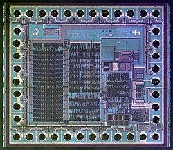 Structure schématique d'une puce CMOS telle que fabriquée au début des années 2000.