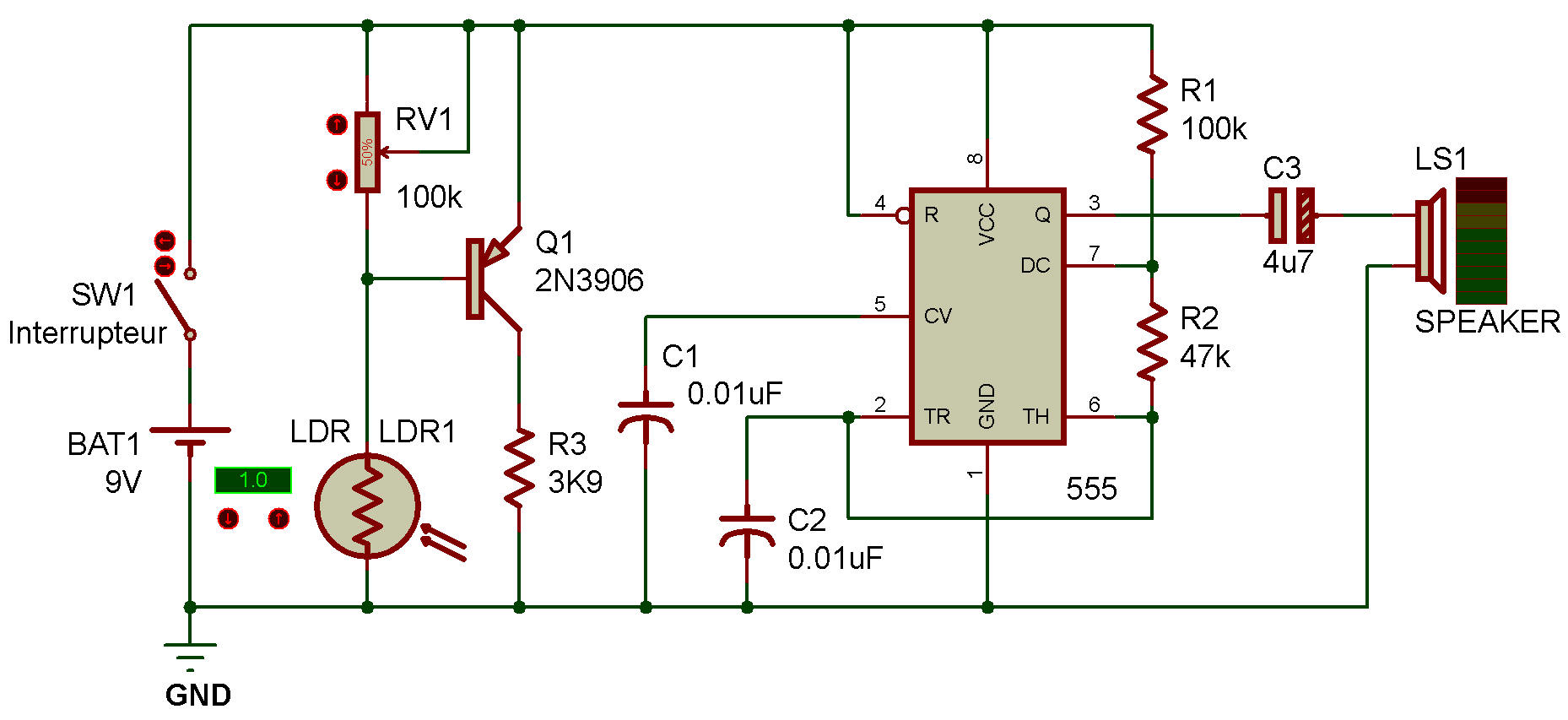 Si la luminosité est faible, aucun courant n'est envoyé au haut-parleur.