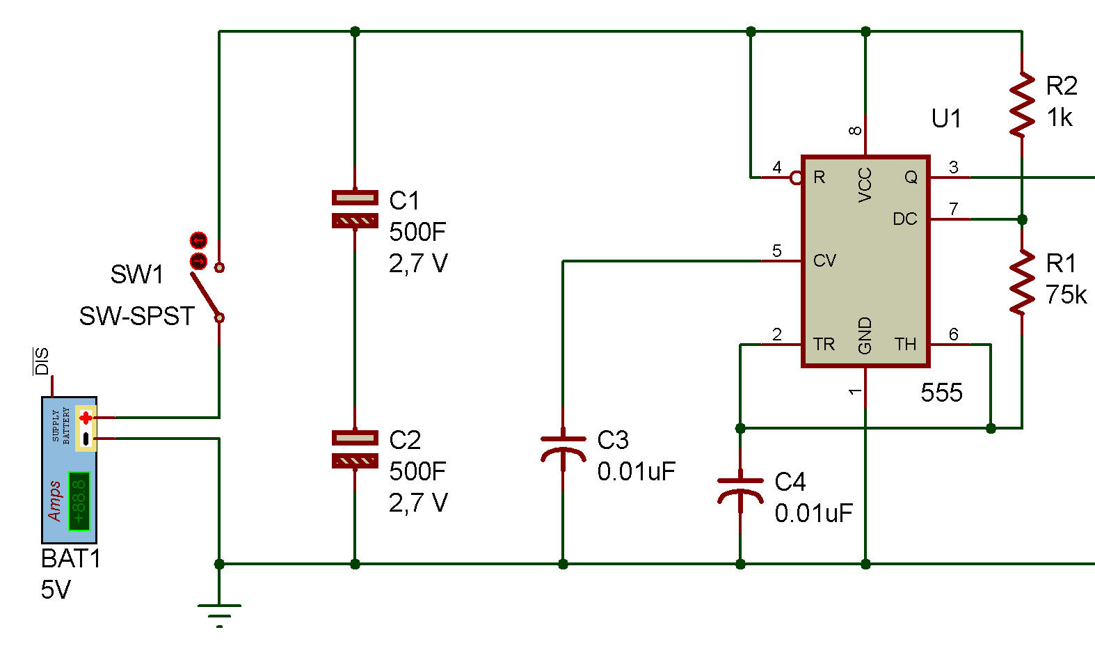 Pour charger le condensateur 500 F Avec le power supply Limiter le courant à 1A. La tension doit être Max 2,7V. Charger jusqu'à l'ampérage soit très bas. Prend environs 22 minutes par condensateur. |