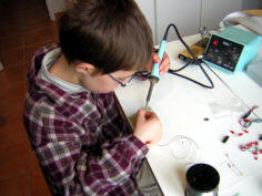 Lorsque ma fille Flavie à fait ses premières soudures sur un circuit imprimé (7 ans), elle avait peur que les composants brulent, et pour cette raison elle ne laissait pas le fer à souder assez longtemps. C'était de ma faute : je lui avais dit qu'il ne fallait pas chauffer trop longtemps, au maximum quelques secondes. Je n'avais pas pensé que le terme "quelques secondes" pouvait vouloir dire "il faut faire très vite". Résultat, la soudure était mal faite, et cela l'énervait, répétant qu'elle n'y arriverait jamais. Je n'en étais pas totalement sûr, mais il me semblait qu'elle avait un peu peur que je la gronde si elle abimait quelque chose. Je lui ai alors dis : "Que tu grilles un ou plusieurs composants n'a aucune importance, j'en ai plusieurs de remplacement. Tu peux donc essayer de laisser le fer plus longtemps pour voir ce que cela donne". La soudure suivante était parfaite. J'ai vu son sourire, et la quasi-totalité des soudures suivantes étaient parfaitement réussies.