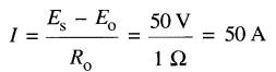 La tension résultante agissant sur le circuit valant (Es - Eo) volts, le courant I n'est limité que par la résistance Ro, ce qui donne: