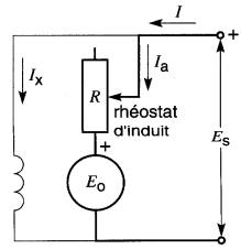 De la même façon, la vitesse peut être diminuée en branchant une résistance en série avec l'induit et l'inducteur