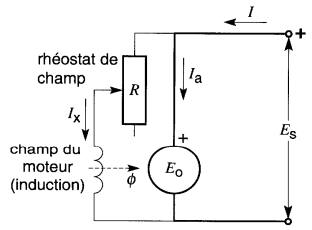Figure 28-7 Commande de vitesse par rhéostat en série avec l'inducteur shunt