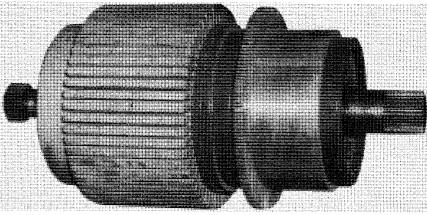 Figure 28-4a Noyau d'induit et collecteur d'un moteur de 225 kW, 250V, 1200 r/min. Le noyau de fer a un diamètre de 559 mm et une longueur de 235 mm ; il est composé de 400 tôles dentées de 0,56 mm.