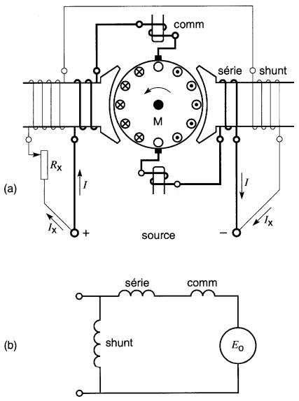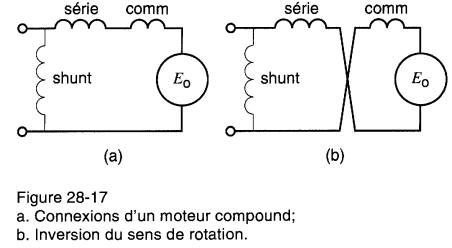 Figure 28-17 a. Connexions d'un moteur compound; b. Inversion du sens de rotation