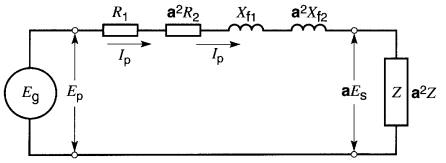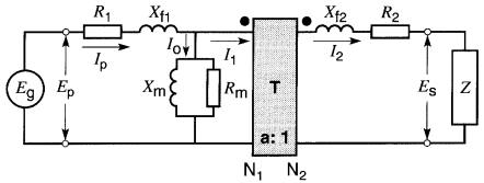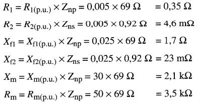 R1 = 18Ω R2 = 0,005Ω Xf1 = 40Ω Xf2 = 0.01Ω E1 = 14,4 kV E2 = 240 V