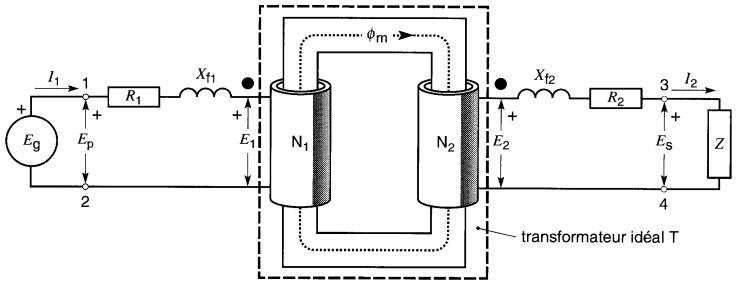 Les autres composants, y compris le transformateur idéal T, demeurent cachés à l'intérieur du transformateur. Cependant, il est possible de déterminer la valeur de ces composants au moyen de tests appropriés.