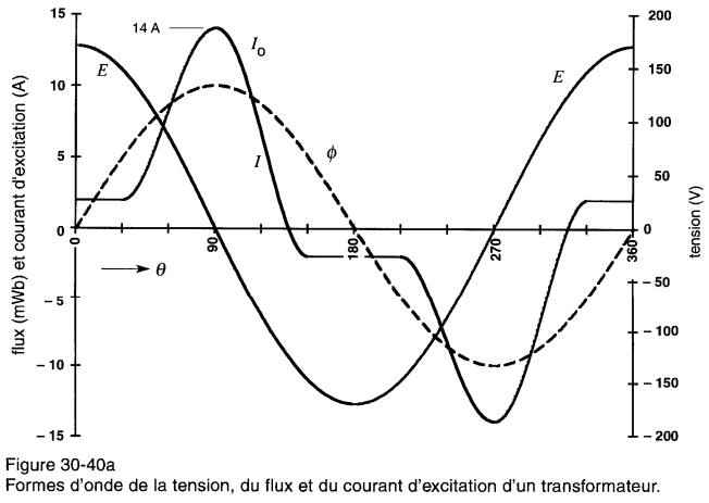 Ce courant Im est appelé courant magnétisant; il est déphasé de 90° en arrière de la tension Eg, comme dans toute inductance (Fig. 30-2b et 30-3b).