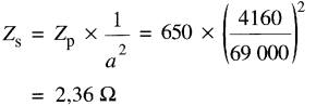 30-26 Un transformateur de 3000 kVA ayant un rapport de transformation de 60 kV à 24 kV a une impédance de 6 %. Quelle est la valeur de l'impédance (en ohms) ramenée:
