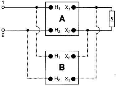 2. Si une borne portant une marque de polarité est momentanément positive, toutes les bornes ayant une marque de polarité sont momentanément positives (par rapport à l'autre borne du même enroulement).