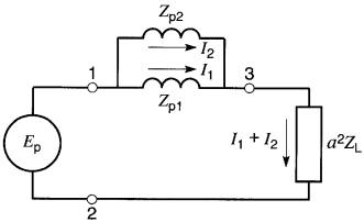 Cependant, même si l'on colle le secondaire contre le primaire, le flux mutuel demeure faible par rapport au flux total Φ. Lorsque le couplage est faible, la tension E2 est petite et, de plus, elle s'écrase dès qu'on applique une charge entre les bornes du secondaire.