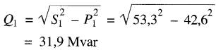 Qs = Q1 + Q2 = 31,9 + (-14,6) = 17,3 Mvar