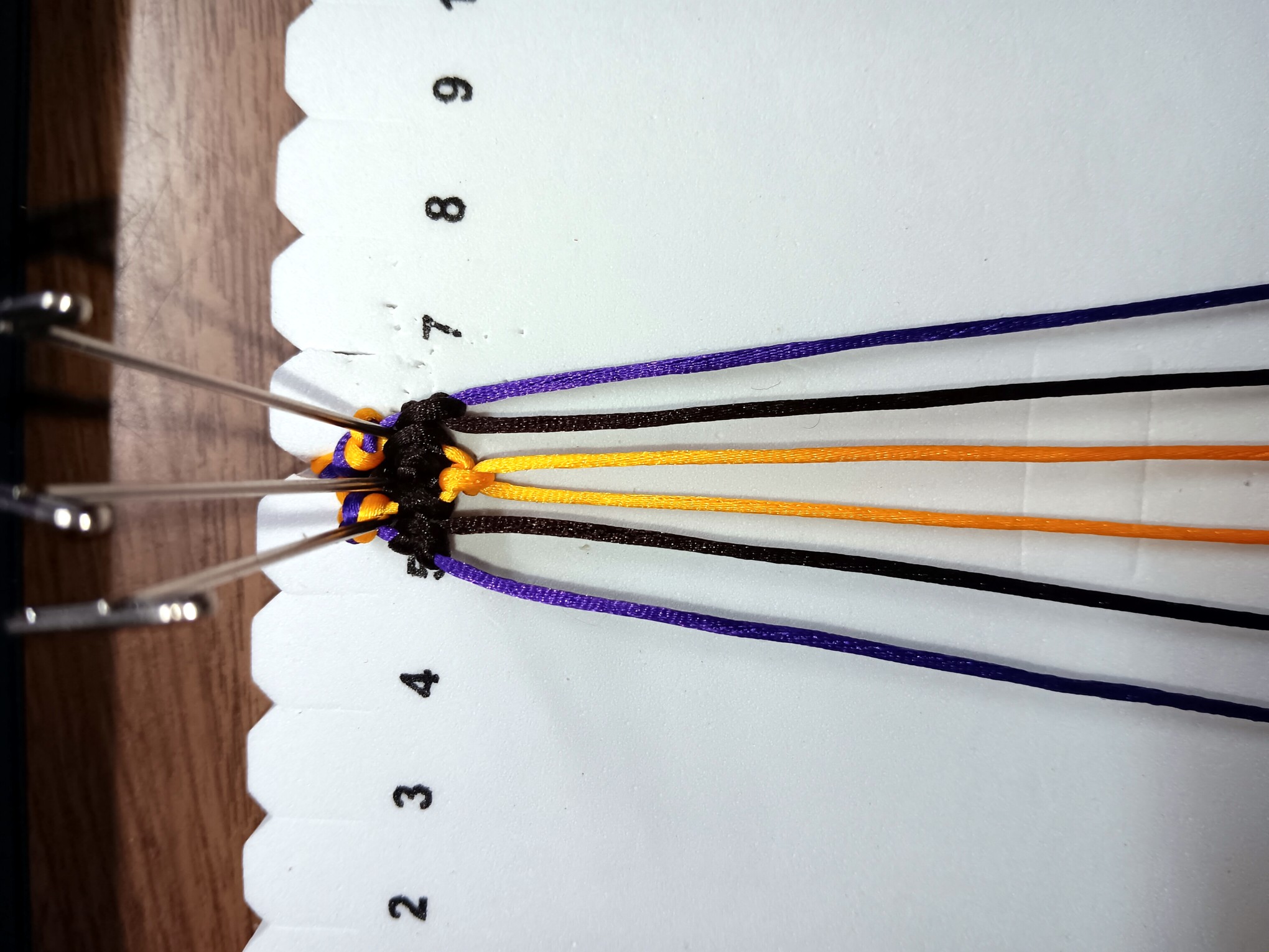 9. À l'aide du brin extérieur droit, en faisant un nœud gauche-droit sur le brin immédiatement à gauche (en laissant les fils à la même position).