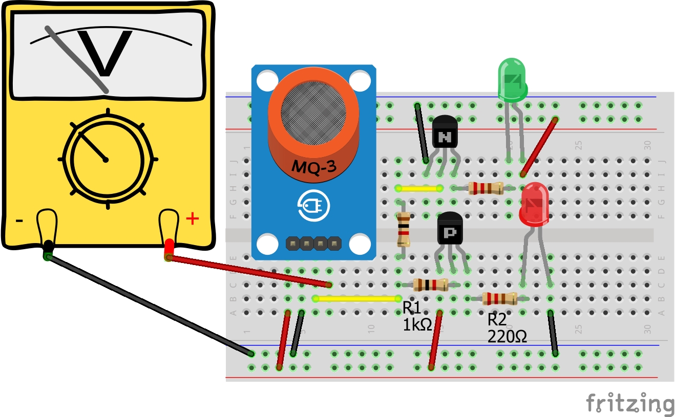 The MQ-3 sensor digital output (DO) can directly drive a NPN transistor