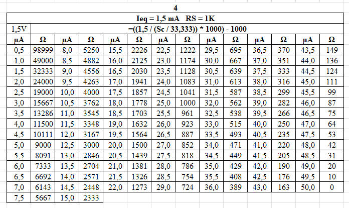 R1 = V / Im = 1,5 / 0,00005 = 30 k - Rm