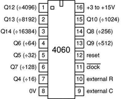 Le CD4060 est une puce CMOS avec un compteur binaire et un oscillateur