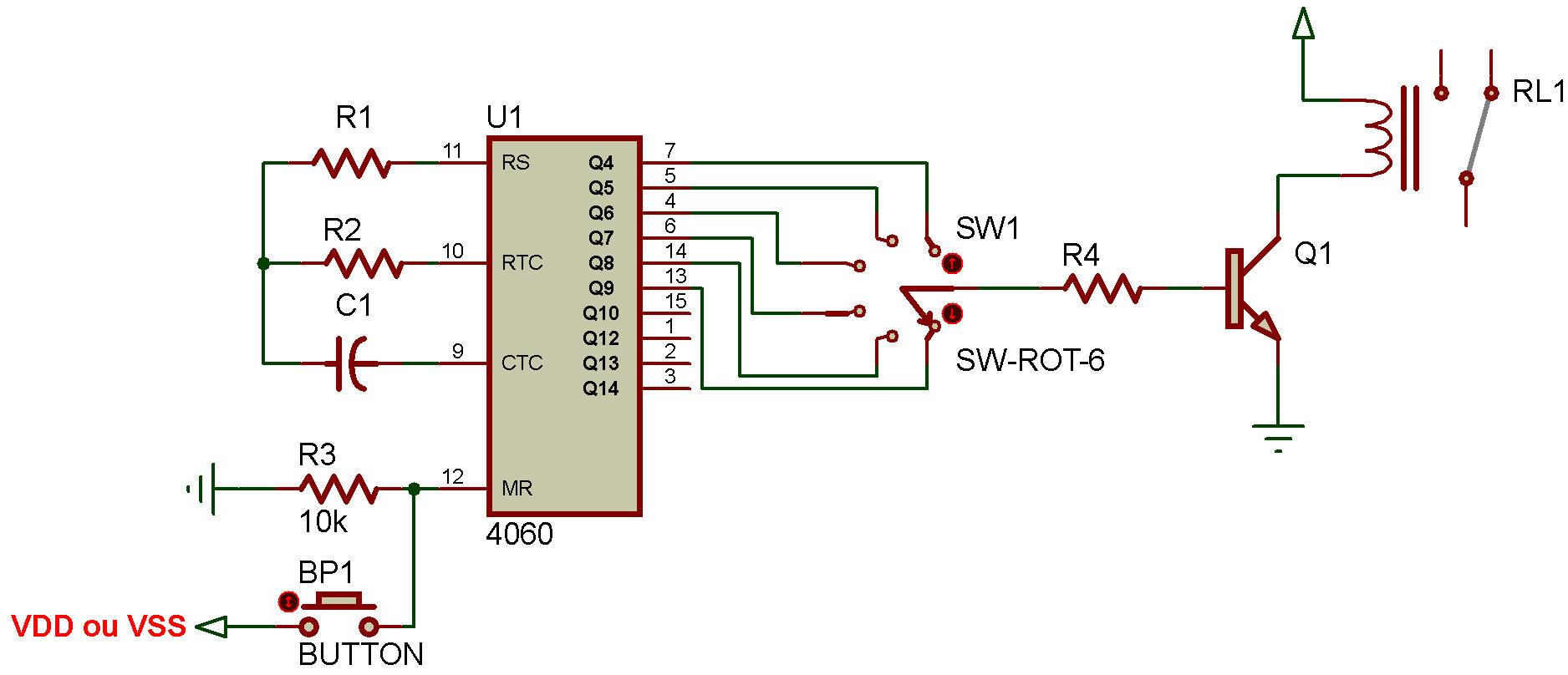 CD4060 – Minuterie réglable Voici un exemple pratique que vous pouvez réaliser avec la puce 4060 : |